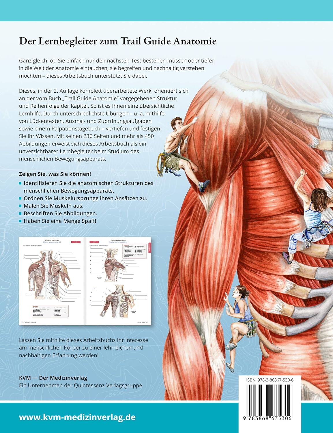 Dieses, in der 2. Auflage komplett überarbeitete Werk, orientiert sich an der vom Buch „Trail Guide Anatomie“ vorgegebenen Struktur und Reihenfolge der Kapitel. So ist es Ihnen eine übersichtliche Lernhilfe. Durch unterschiedlichste Übungen, u. a. mithilfe von Lückentexten, Ausmal- und Zuordnungsaufgaben sowie einem Palpationstagebuch, vertiefen und festigen Sie Ihr Wissen. Mit seinen 236 Seiten und 450 Abbildungen erweist sich dieses Arbeitsbuch als ein unverzichtbarer Lernbegleiter beim Studium des menschlichen Bewegungsapparats.