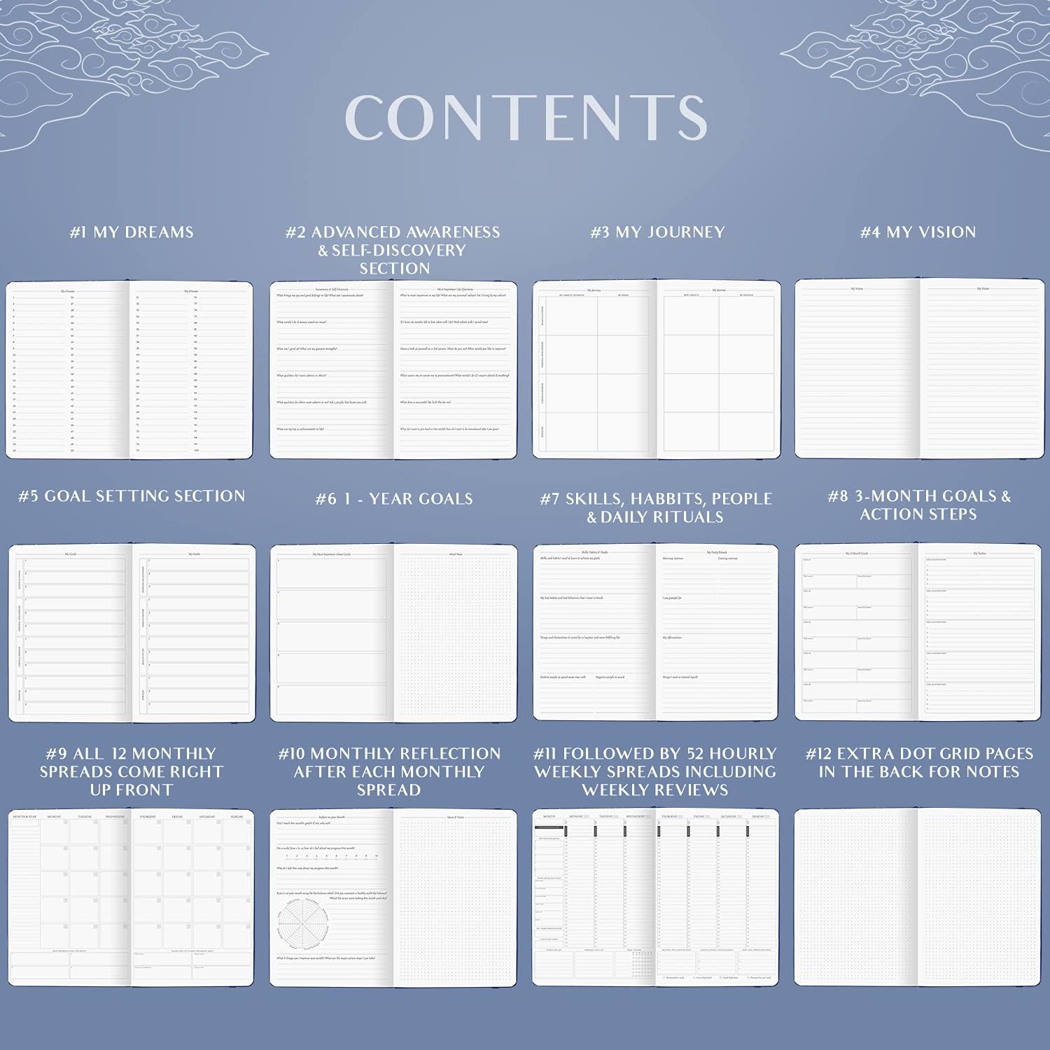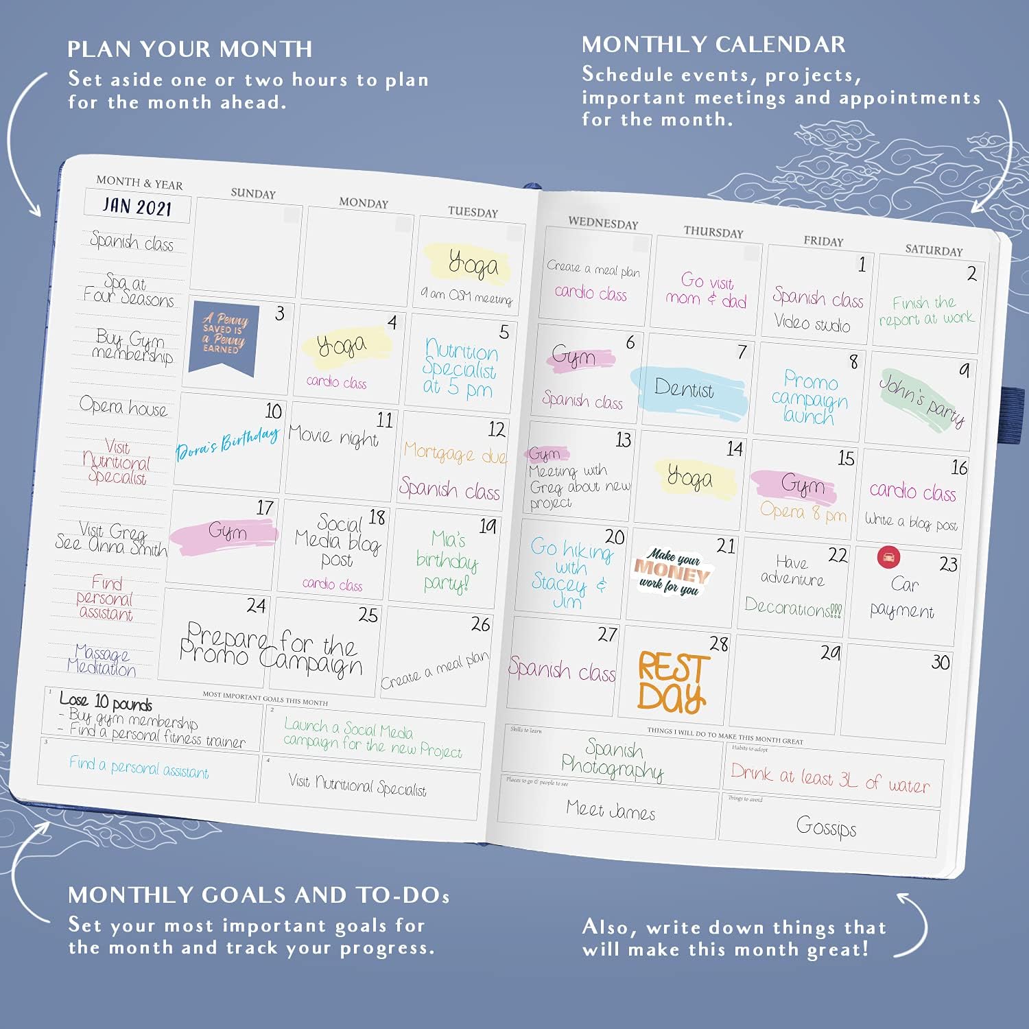 Improve work-life balance, develop new habits and feel happier – this planner will help you become your best self and achieve all your life goals. Adopt and adhere to healthy habits and positive daily rituals. Incorporate gratitude for an inspired everyday life. Improve your weekly and monthly reflection sections. This is the perfect productivity and time management planner for men and women!
