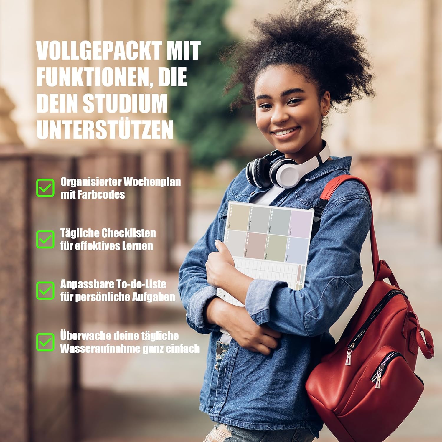 TO-DO LIST, BALANCE BETWEEN STUDY AND LIFE – A special „to-do list“ section is set up to put the focus on the daily affairs outside of study. Create a balance between challenging academic assignments and a varied private life. You can add tasks at any time as needed, respond flexibly to life changes and ensure that all matters are done properly without losing orientation.