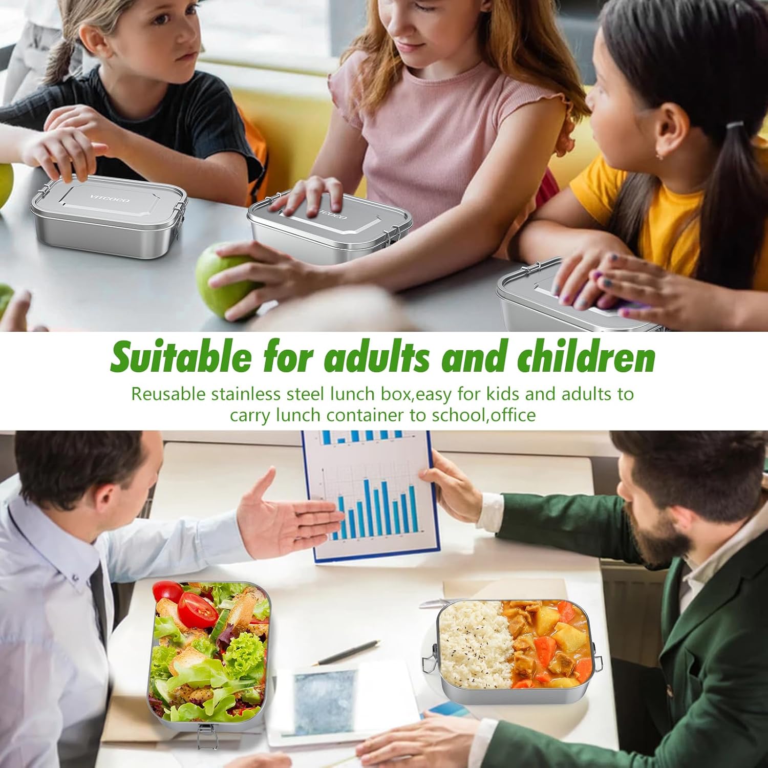 Vitcoco lunch box leak-proof stainless steel lunch box with removable divider, which will accompany you for a long time, made of high quality 304 stainless steel without plastic and is 100% BPA-free.