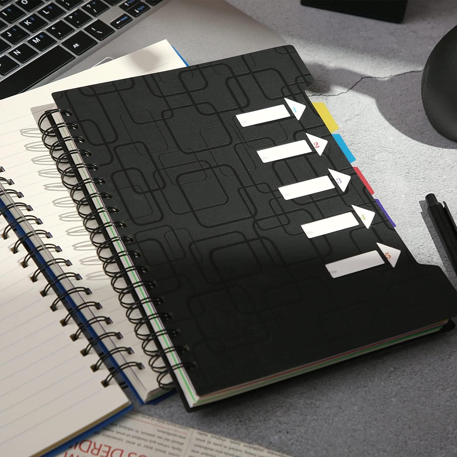 Do everything with ease: the spiral notebook is equipped with 5 impressive, removable dividers & 5 practical, writable tabs. The colorful dividers help you sort your themes and quickly find them by name. With just one index notebook, you can manage 5 different topics and take notes. A great gift for „organisation“ at school or at work!