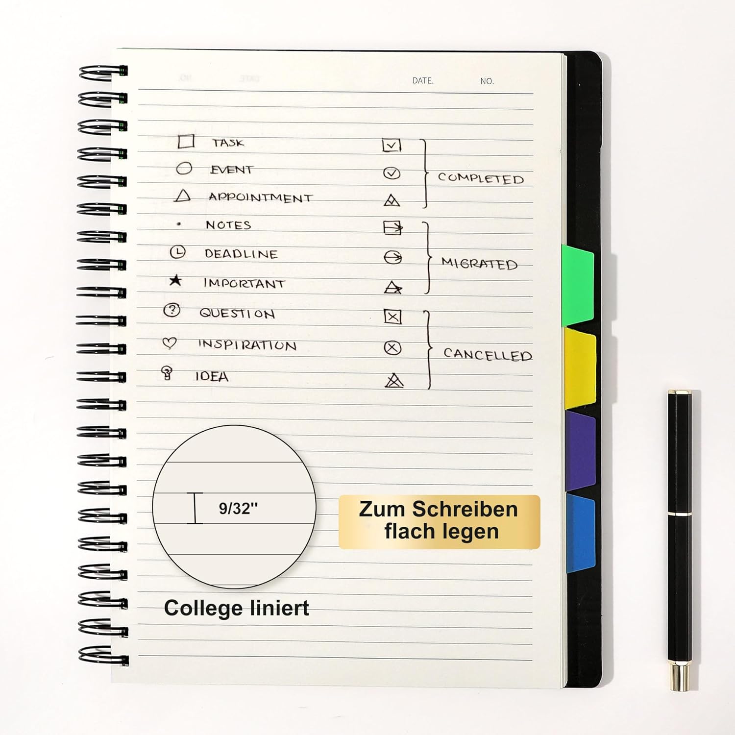 DEPENDENT COLLEGE RULED PAPER: With the popular 7.1mm line spacing, the college line notebooks allow you to take more notes on one page. Each page has a notation for „Date“ and „No.“. Excellent for writing down activities or memories! And eye-friendly yellowish paper to relieve your eyes!