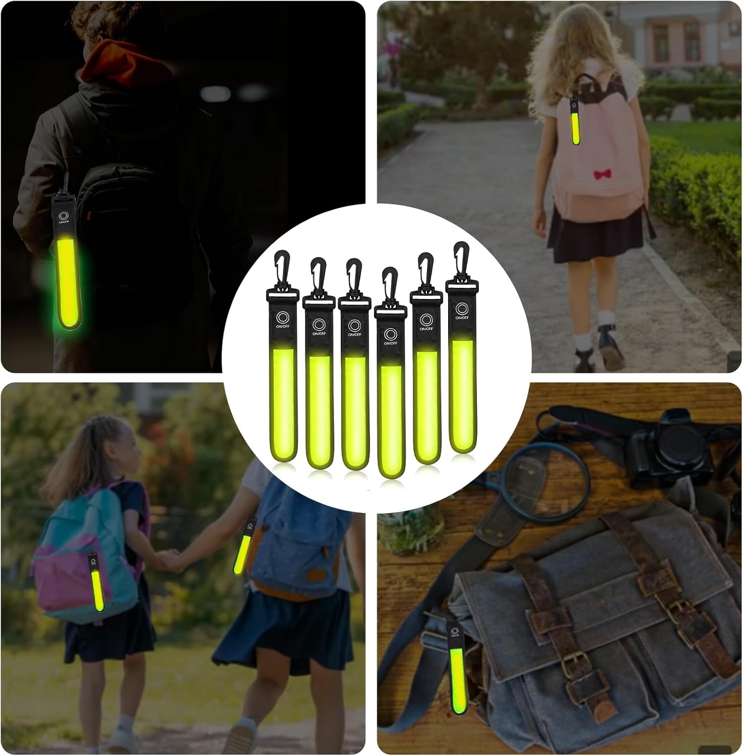 6 x yellow green LED flashing light school bag