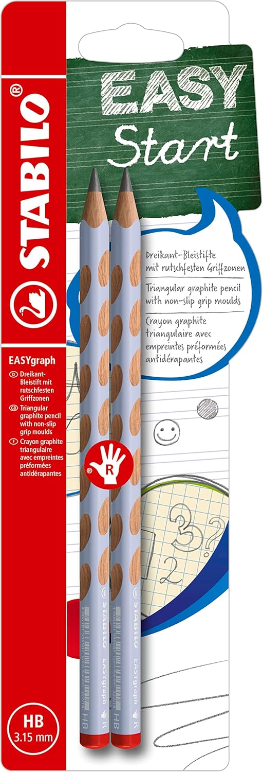 Der STABILO EASYgraph ist in den Härtegraden HB, B und 2B erhältlich und hat einen Minendurchmesser von 3,15 mm.