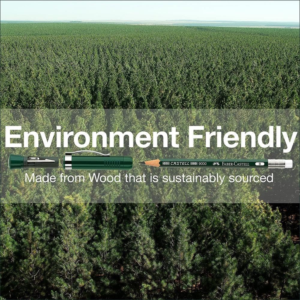 Faber-Castell 119037 – Perfect Castell 9000 Pencil – Hardness Grade B – Lead Colour: Green