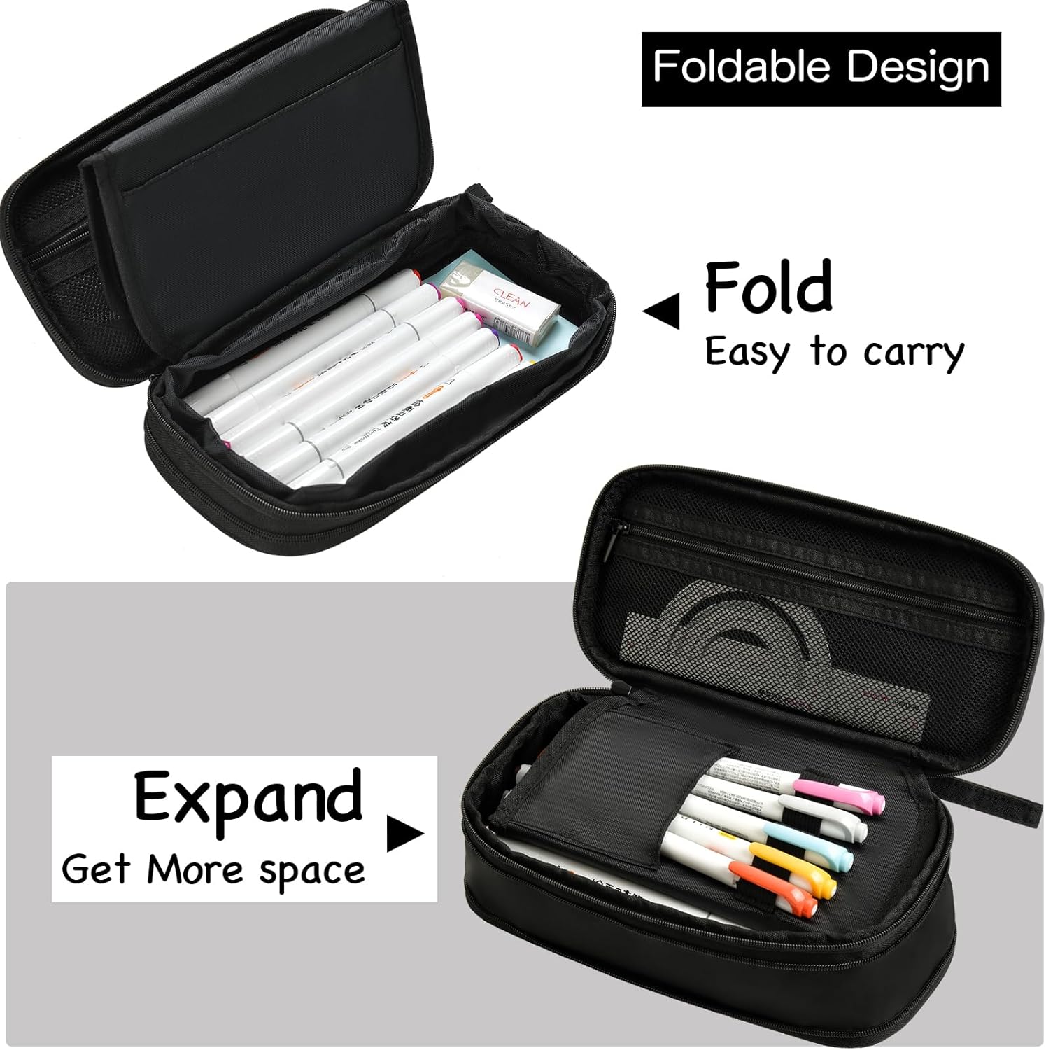 【Storage】Deformable design: easy to carry, after folding, it can provide more space for storing pencils.