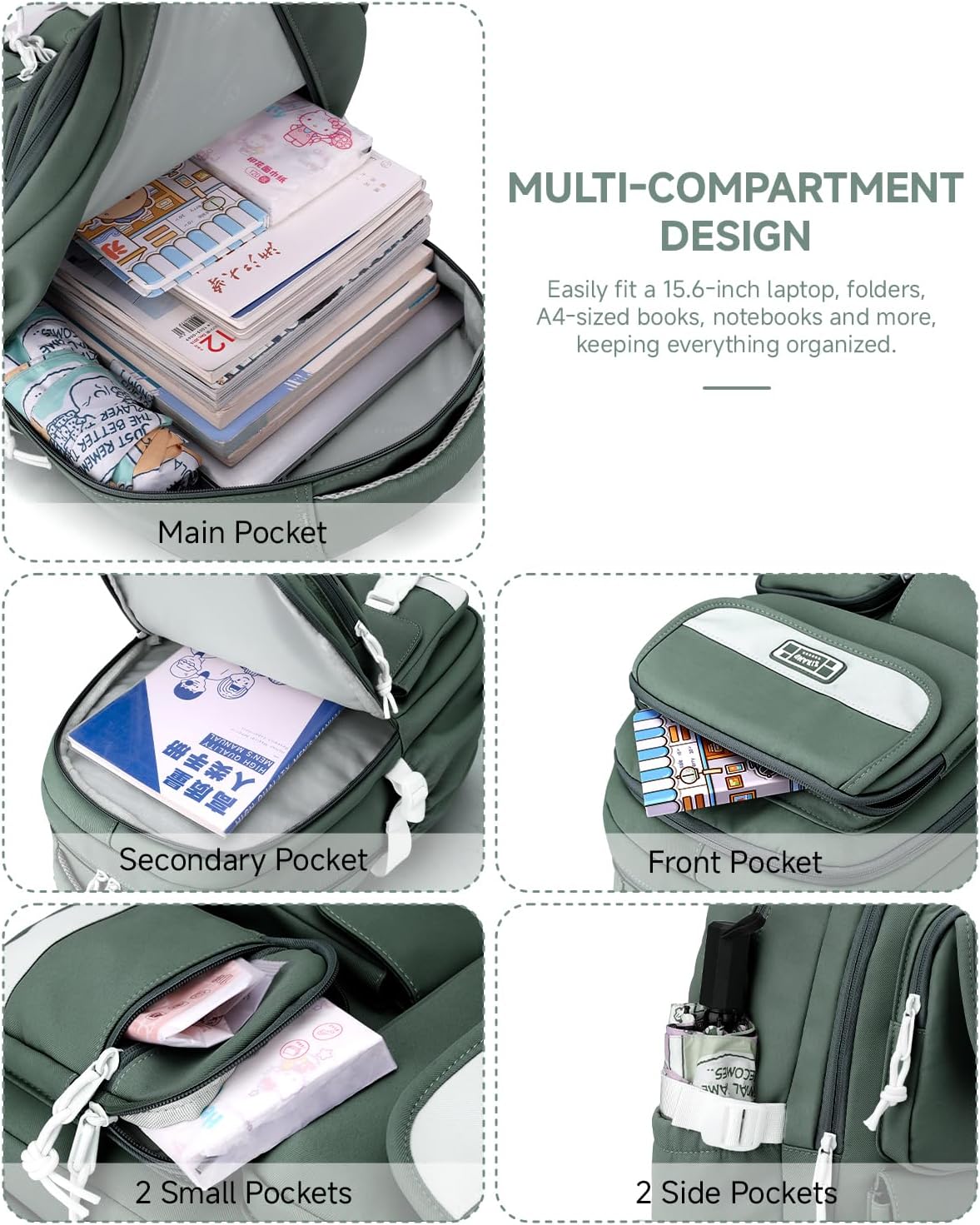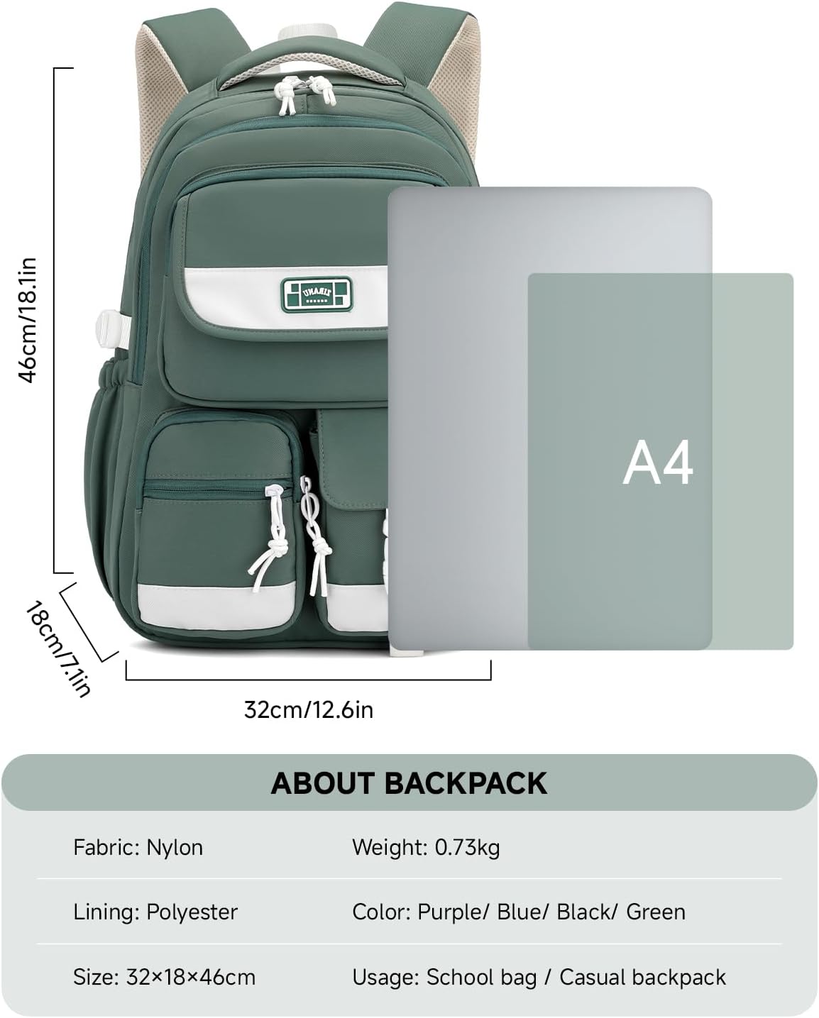 Be the first to review “Backpack Teenager, School Backpack Girls with Many Compartments, School Bag for Students 3rd to 5th Grade, Medium and High School, Nylon Daypack for Travel, Leisure, Green, Rucksack Backpacks”