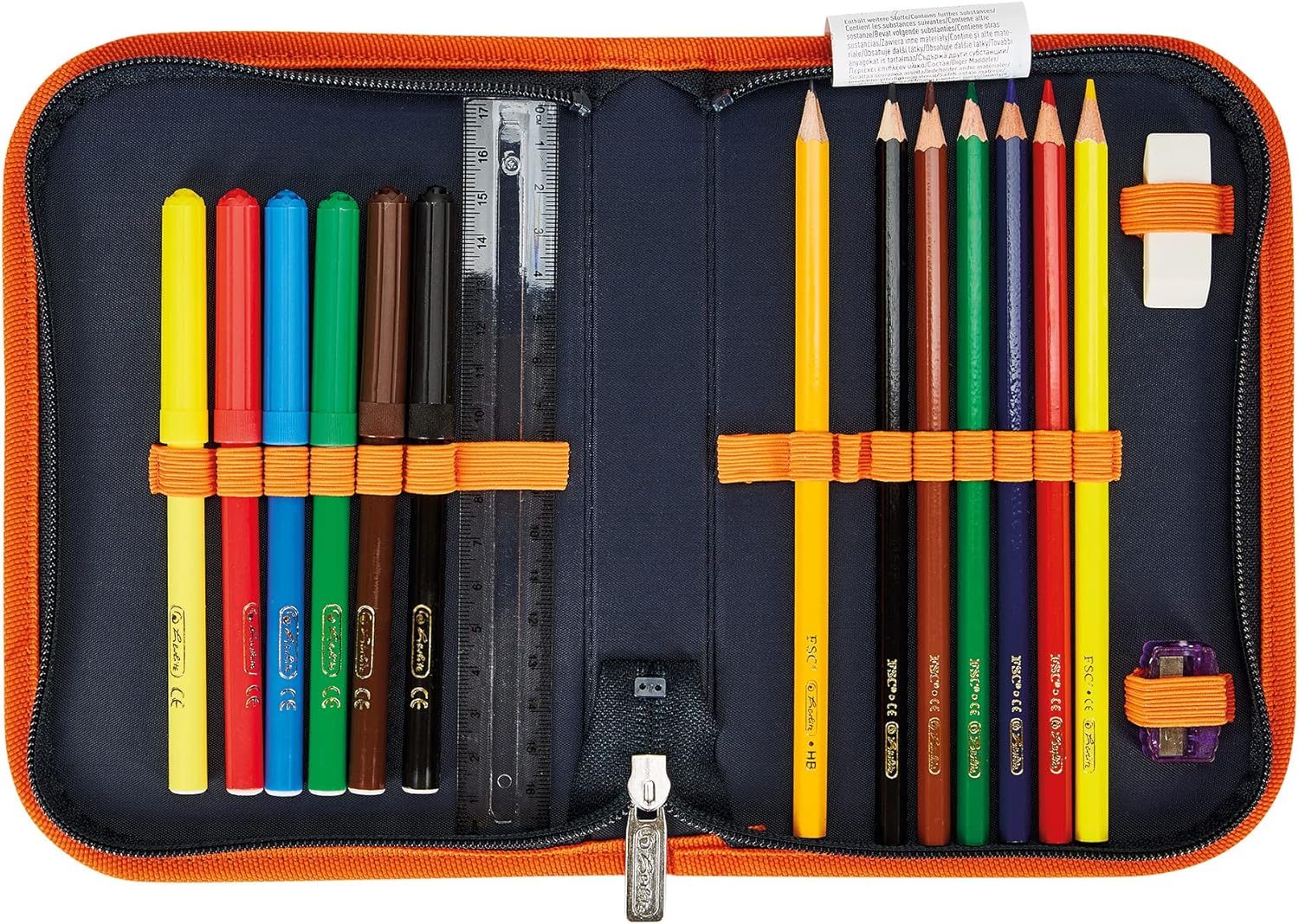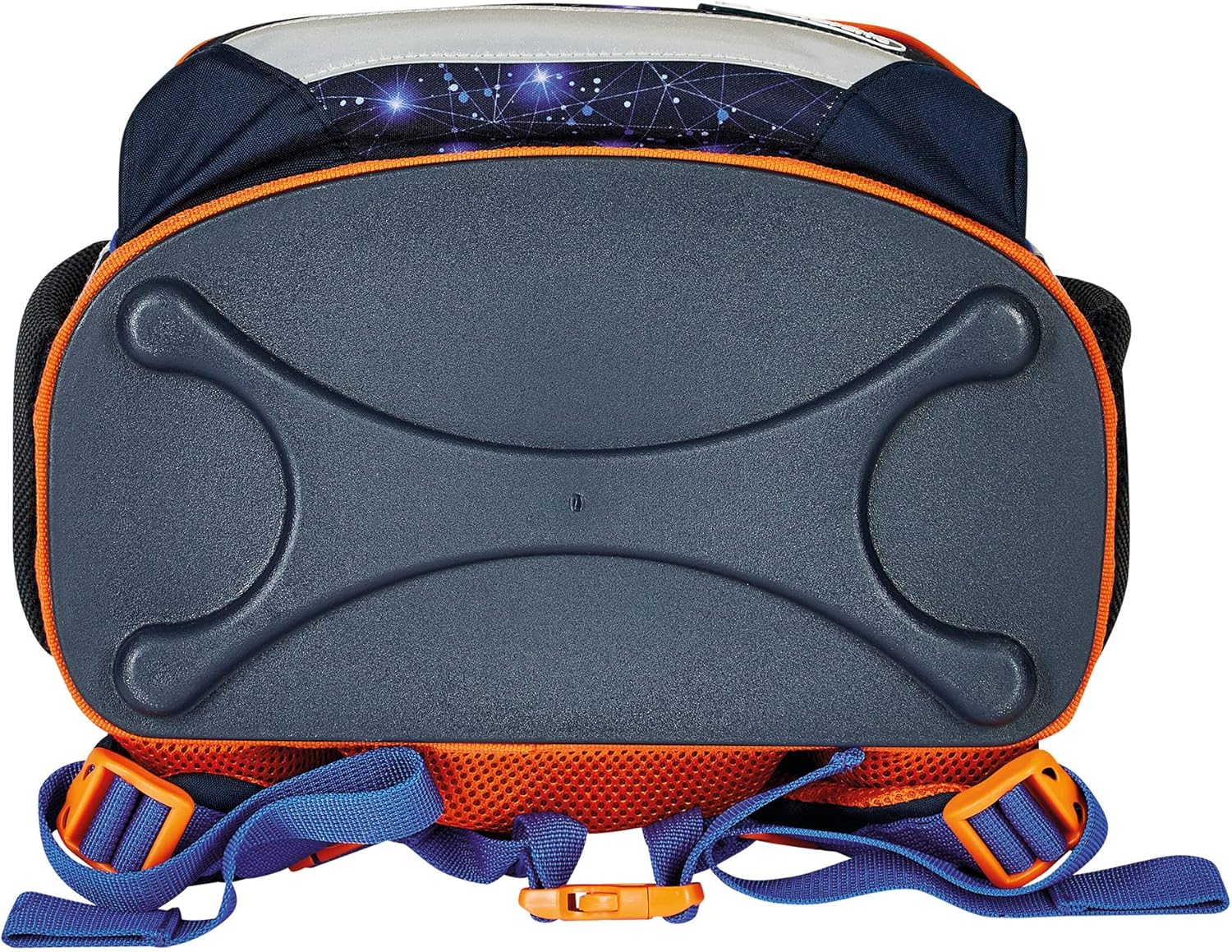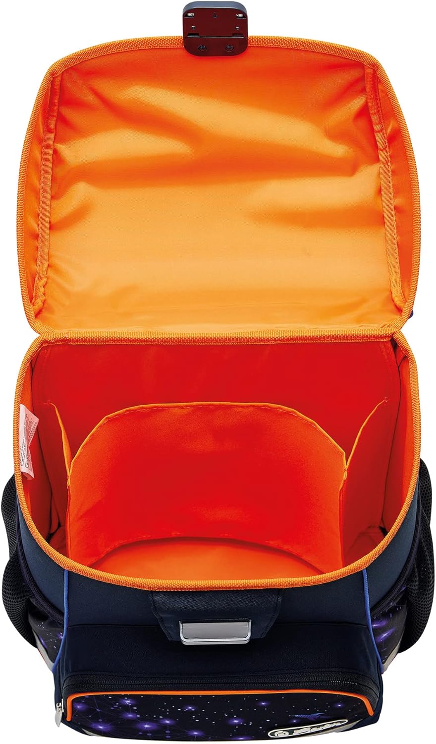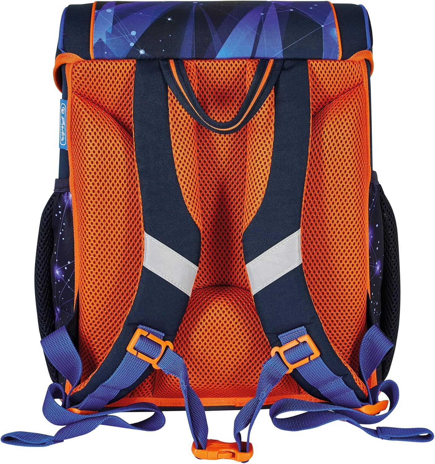 The Herlitz Loop is characterised by its low weight of less than 1 kg. The dimensionally stable body and the classic pocket division make it easy for children to keep a good overview of the school materials and organise them quickly. In terms of the ergonomic features, this particularly light model impresses with its ergonomically shaped back padding, which offers optimal wearing comfort with its breathable material. In addition, adjustable shoulder straps and a height-adjustable chest strap ensure high flexibility and great adjustment options. Safety in the dark is ensured by the reflective materials on the front and side area, shoulder straps as well as by an additional reflector in the click lock.