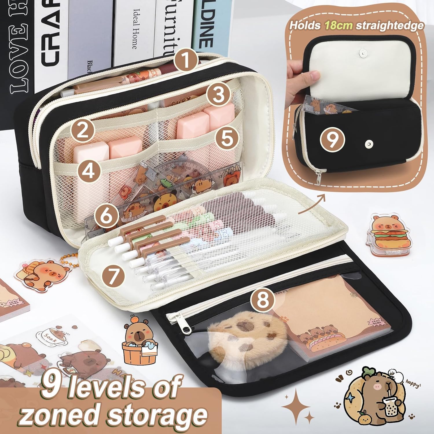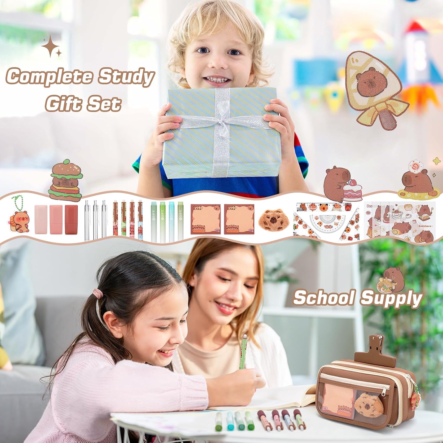 Gift for boys and girls – This Capybara pencil case set is beautifully designed and versatile, it can be used for study, creative writing, drawing and so on, perfect as a school stuff for your family or students. This aesthetic school stuff supplies all kinds of stationery, everything you need, ideal for back to school supplies for students.
