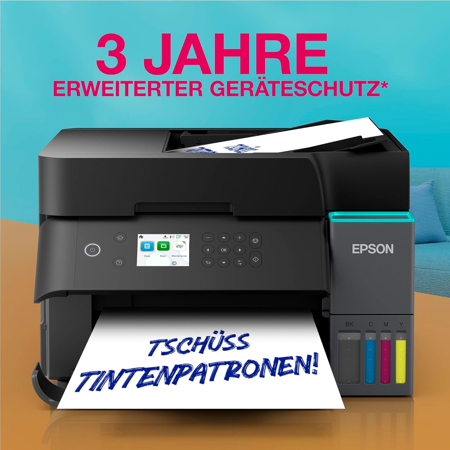 INCLUSIVE INK FOR UP TO 3 YEARS* – With the included ink bottles you can print up to 15,100 pages in black and white and 5,500 pages in colour*