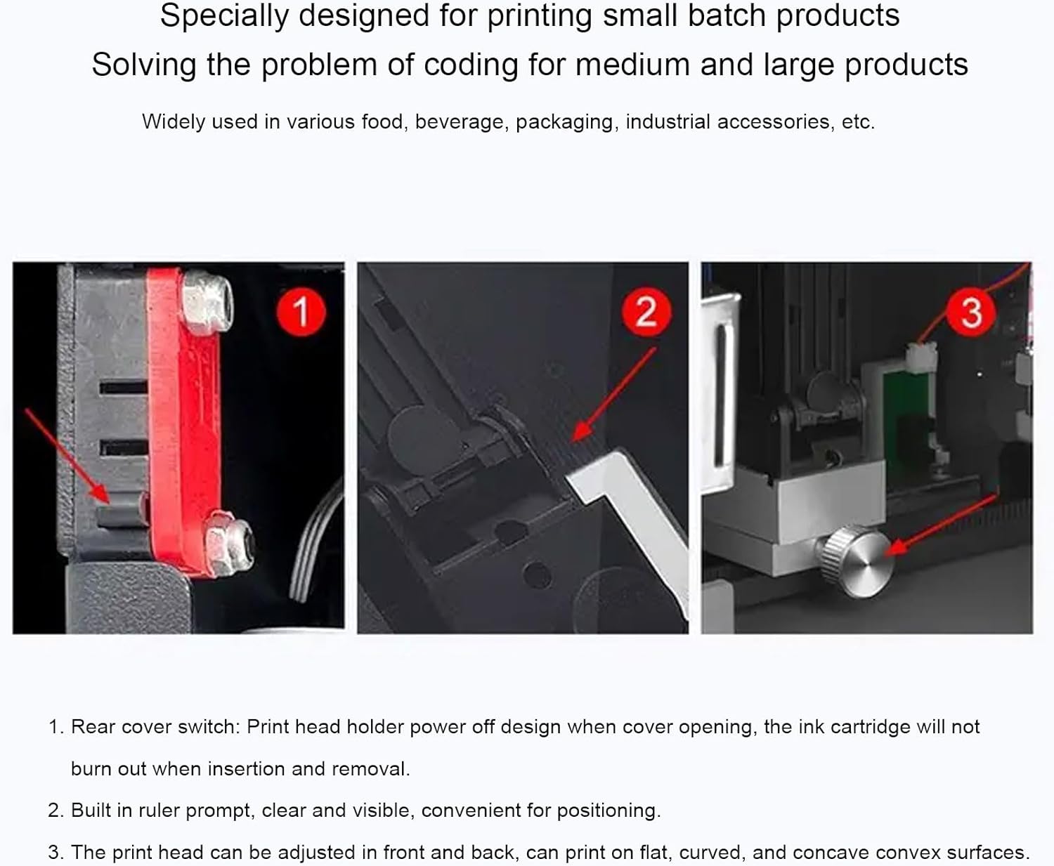 Präzise Steuerung: Dieser tragbare Tintenstrahldrucker verfügt über eine automatische Tintenstrahlcodierung mit Führungsschiene und präziser Positionierung, sodass er für den Druck verschiedener Artikelgrößen geeignet ist, von kleinen Etiketten bis hin zu großen Kartons