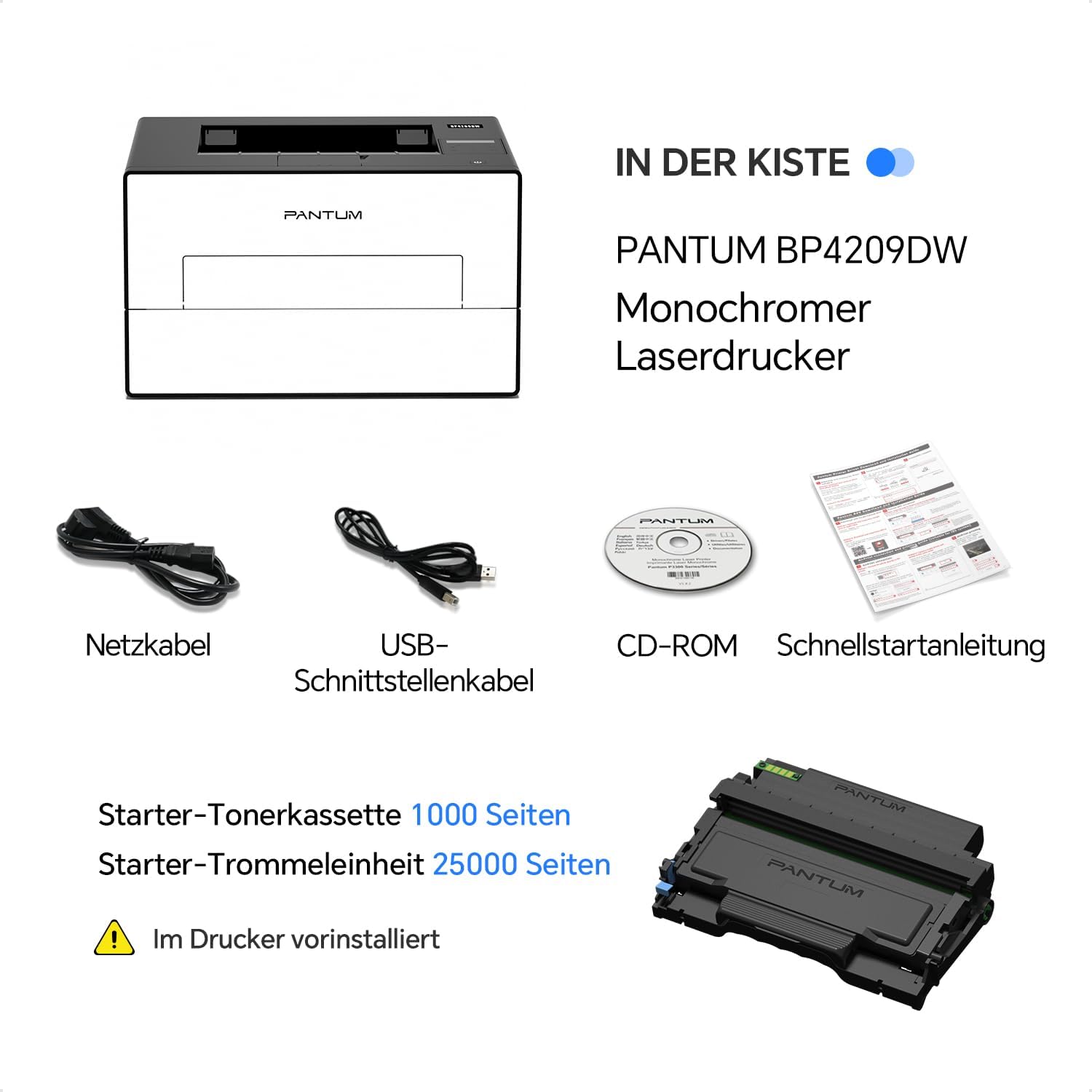 Be the first to review “PANTUM BP4209DW Laser Printer Black White with Automatic Duplex Printing Printer, WLAN/USB/Ethernet, A4, 30 ppm, Includes 1000 Page Starter Toner Cartridge”
