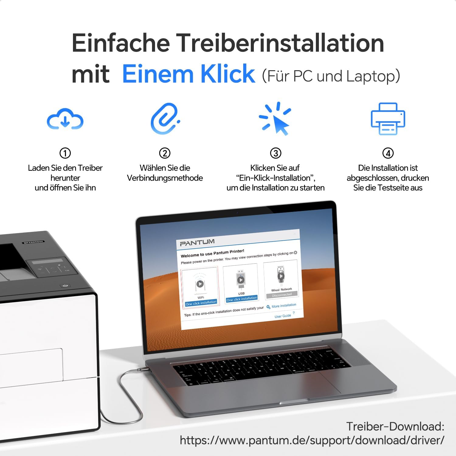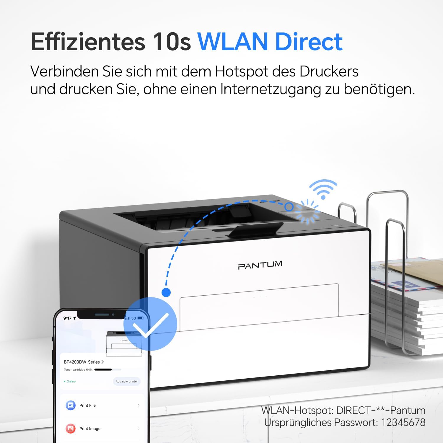 Connectivity: 2.4G /5G dual-band Wi-Fi, Ethernet, Hi-Speed USB2.0. Supports AirPrint, Mopria and Pantum app. You can connect directly to the printer’s built-in Wi-Fi hotspot or your wireless network