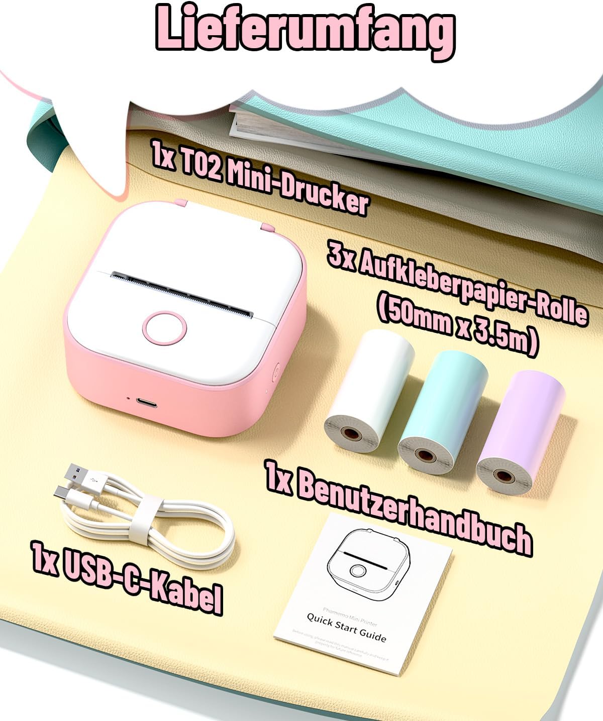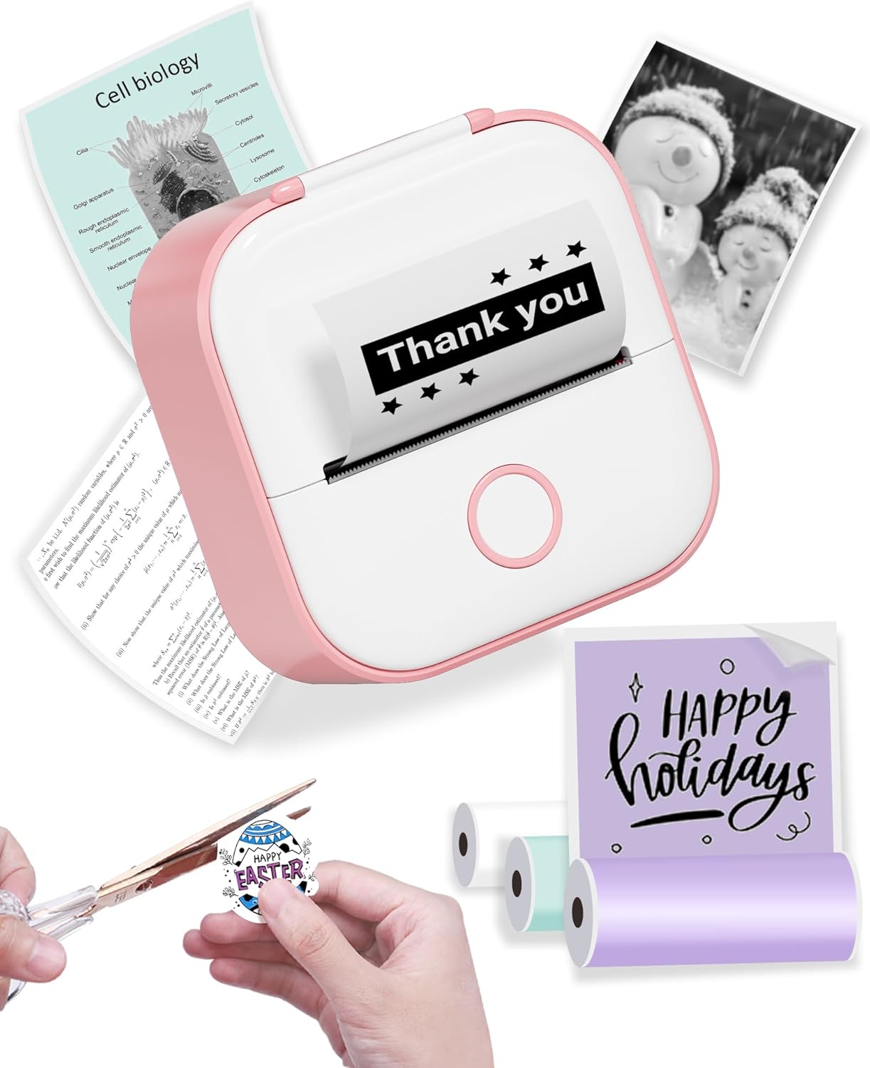Save $1000 per year: T02 lablers sticker maker machine mini printer, uses the principle of thermal imaging to quickly achieve 203dpi HD printing. Compared to other printers – no need for toner, ink and ribbons, save $1000 per year – the included pocket printers only need environmentally friendly thermal paper. T02 compact small printers – save money. Paper Specification: 50 mm / 53 mm)