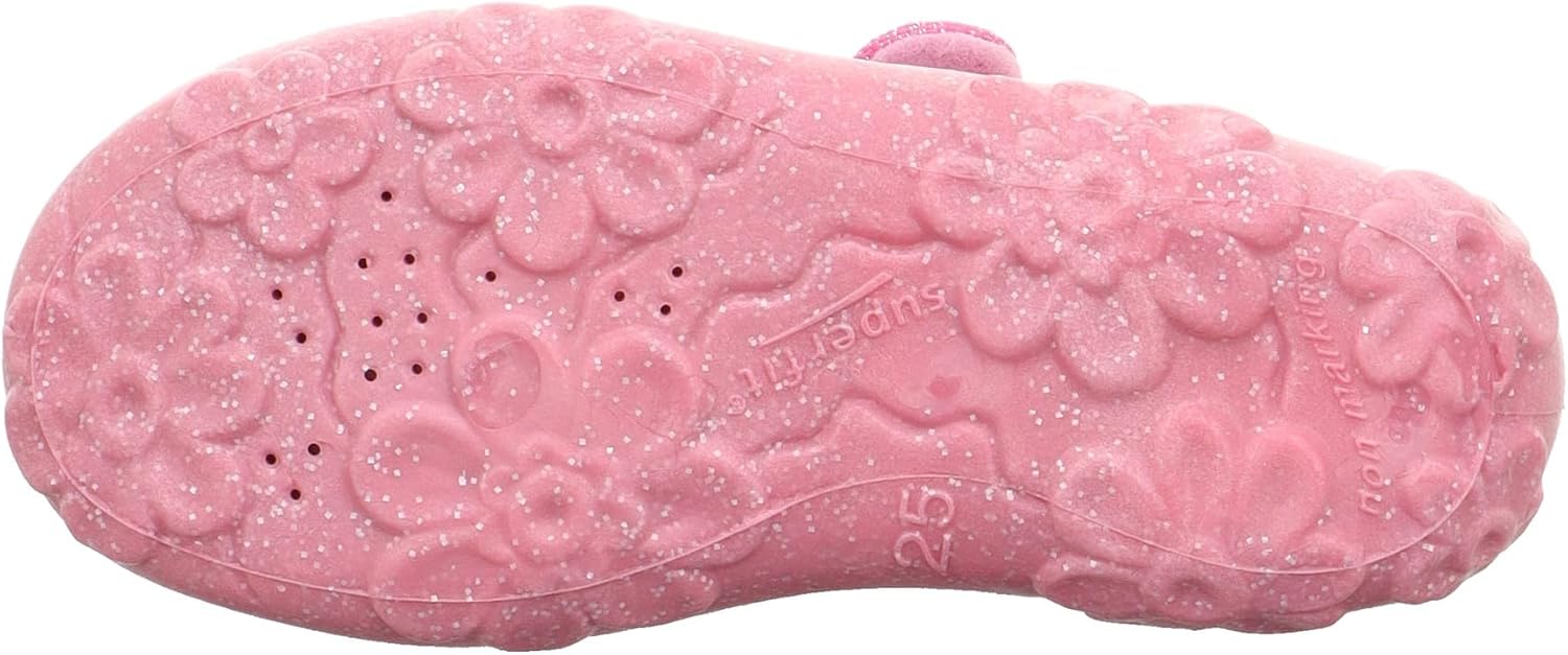 The Bonny slippers are simply adorable. The classic ballerina slippers from Superfit charms not only with its cute heart motif, but also with the flower details on the particularly light, flexible and non-slip PVC sole. Good to know: the sole does not stain and its small air holes keep children’s feet at the right temperature. Just like the high-quality cotton lining. The slippers are made from durable textiles making them ideal for any indoor adventure. With the wide Velcro fastener, the shoe can be opened wide and can therefore be easily put on and taken off. A firm hold is therefore also guaranteed. The Bonny ballerina is available in the WMS width M IV.