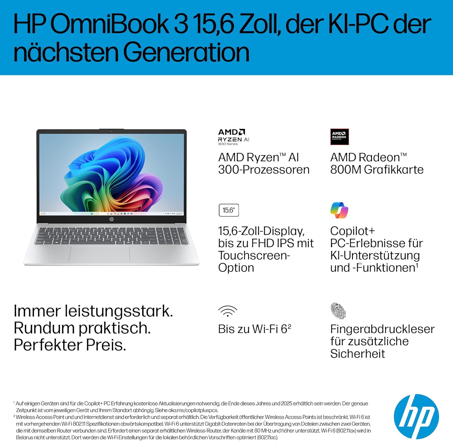 Be the first to review “HP OmniBook 3 Next Gen AI PC 15-fn0523ng | Copilot+ PC | 15.6 Inch FHD Display (1920 x 1080) | AMD Ryzen AI 5 330 (50 NPU Tops) | 16GB RAM | 512GB SSD | QWERTZ Keyboard | Windows 11 Home | Silver”