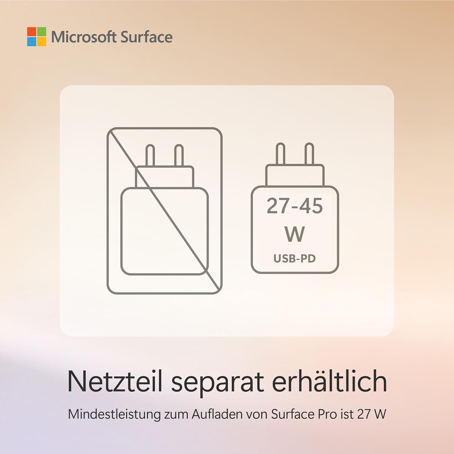 To support EU initiatives to reduce e-waste, the power supply is now sold separately. For more information on charging your Surface device, visit aka.ms/SurfaceChargingOptions