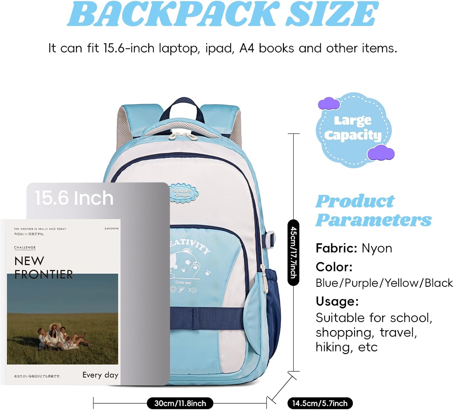 Easy to carry: equipped with horizontal straps on the back, you can attach the girls‘ school bag to your luggage or trolley and thus relieve your shoulders. It can be used as a school backpack for girls and boys, daypack, teen travel backpack, laptop backpack and so on