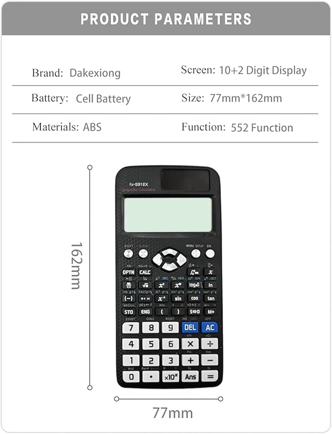 POWERFUL Equipped with 552 functions, the FX-991EX scientific calculator can handle a wide range of math operations, from basic arithmetic to matrix calculations, statistical functions, and vector operations. Its responsive system delivers fast results, making it an excellent tool to solve complex problems in time.