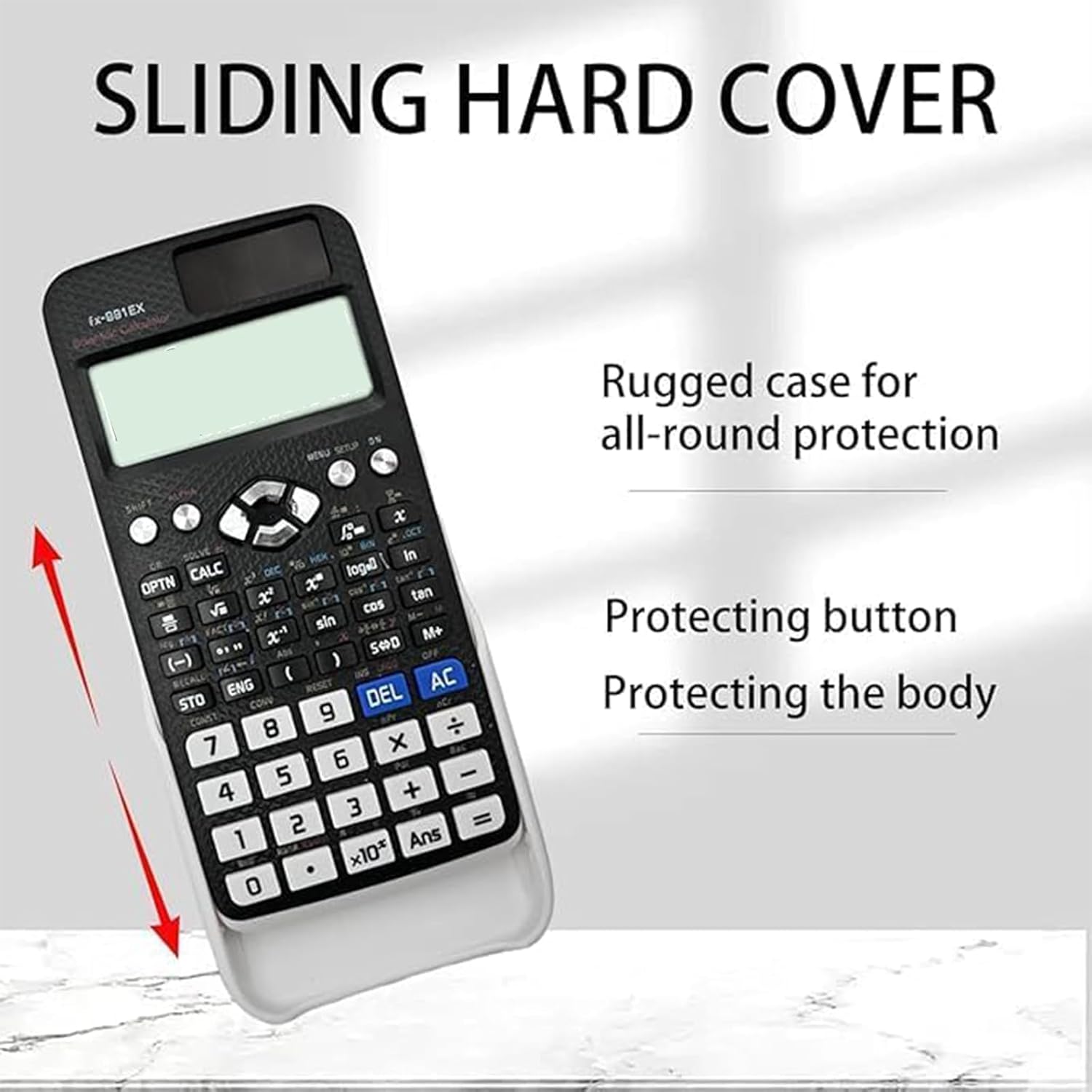 Durable Protection The scientific calculator comes with a sliding hard case. The case not only protects the keys from scratches and damage, but also protects the calculator body. Calculator Scientific provides a degree of protection from accidental drops and bumps to ensure the calculator remains in pristine condition for a long time.