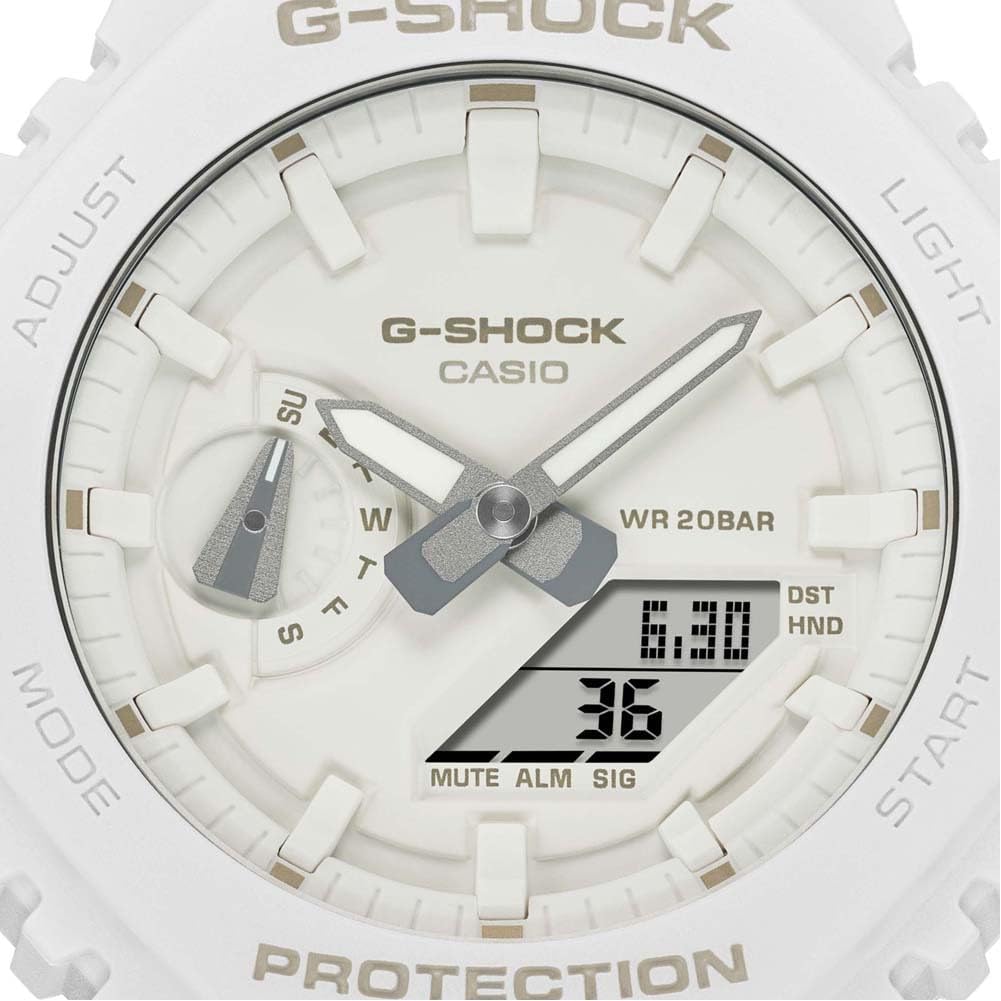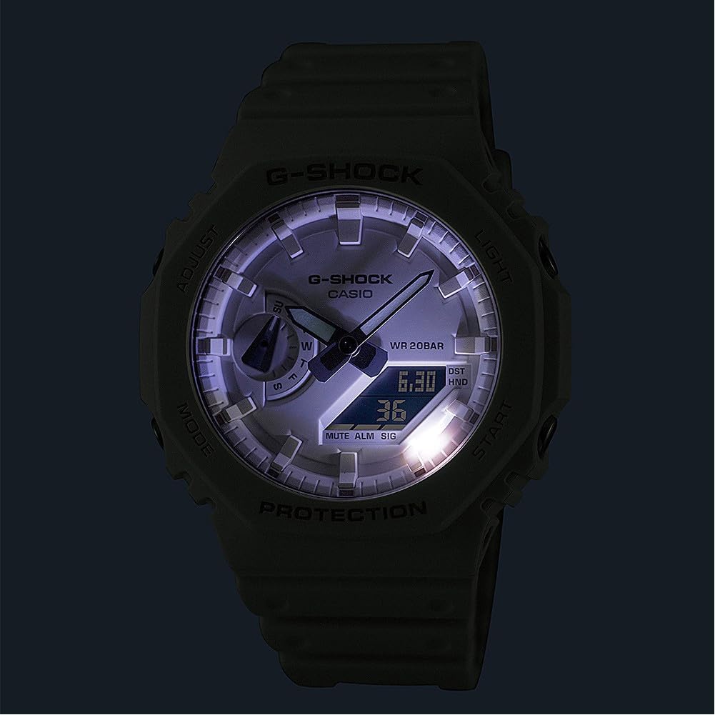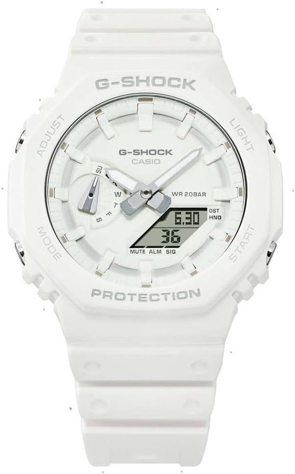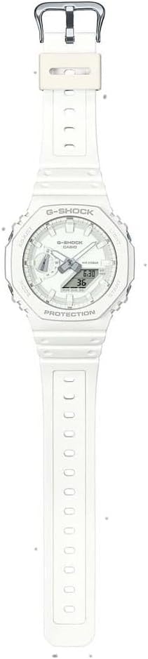 Casio GA-2100-7A7ER Men’s Analogue Digital Quartz Watch with Plastic Strap, White, 20 Bar Waterproof, Stopwatch World Time Alarm Bluetooth Lighting