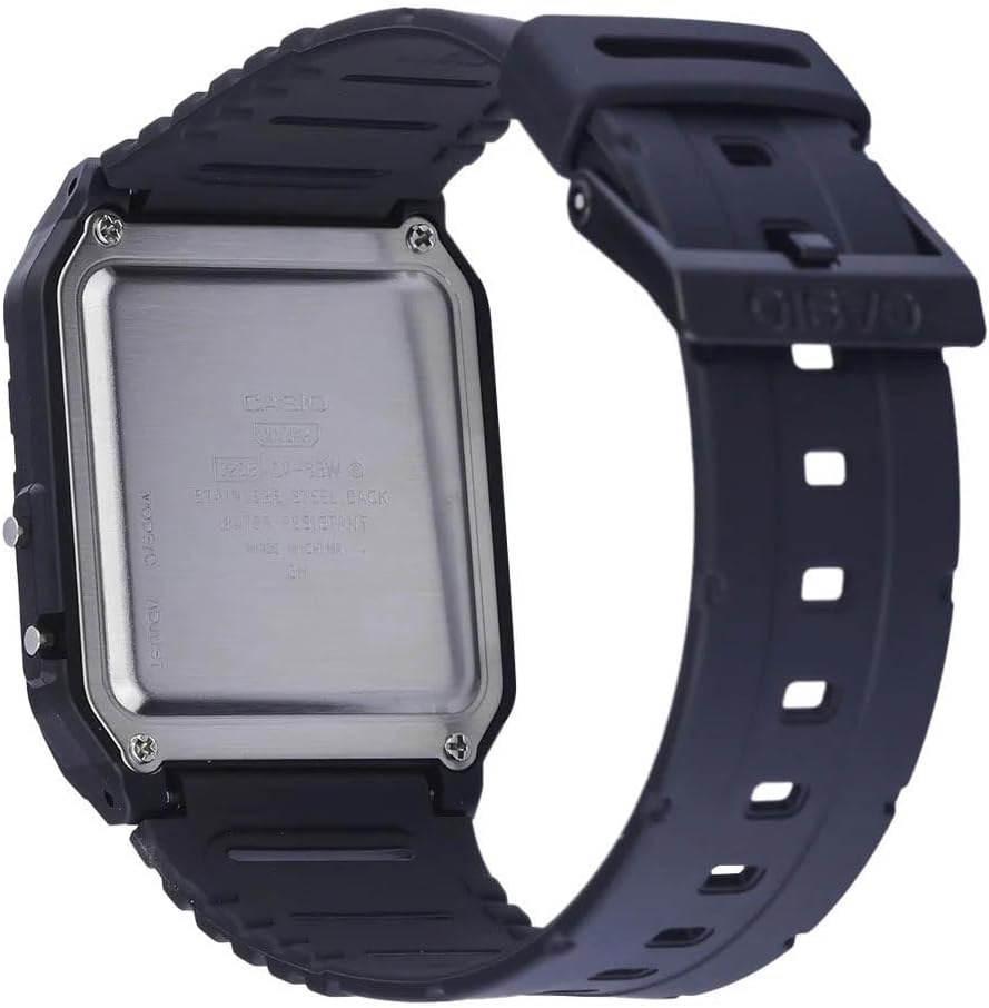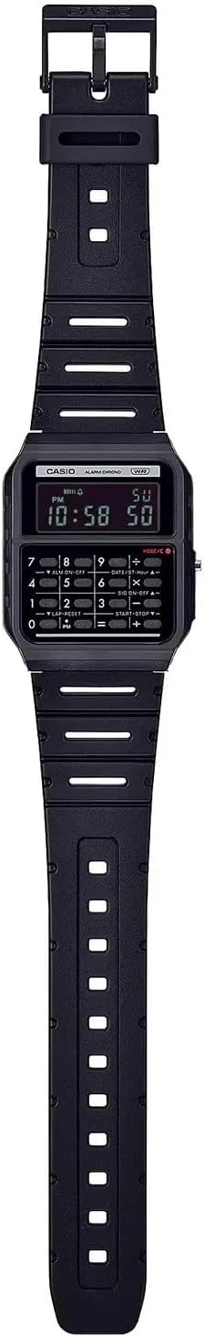 Revive your retro style with a watch in the look of the Casio Mini, the groundbreaking Casio calculator. This digital watch has a calendar function: day date as well as a stopwatch, dual time, a calculator and an alarm.