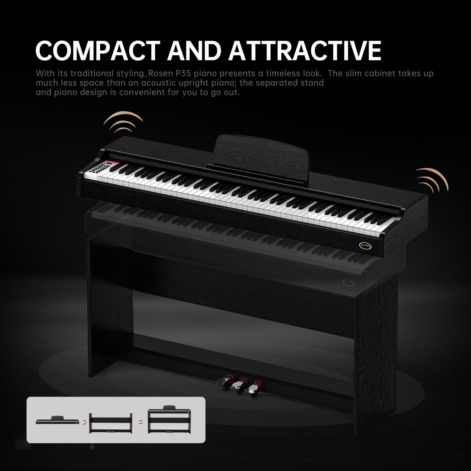 Be the first to review “Rosen P35 Beginner 88 Key Digital Piano Full Size Weighted Keyboard with Furniture Stand, Black Portable Electric Piano, 3-Pedal Unit”