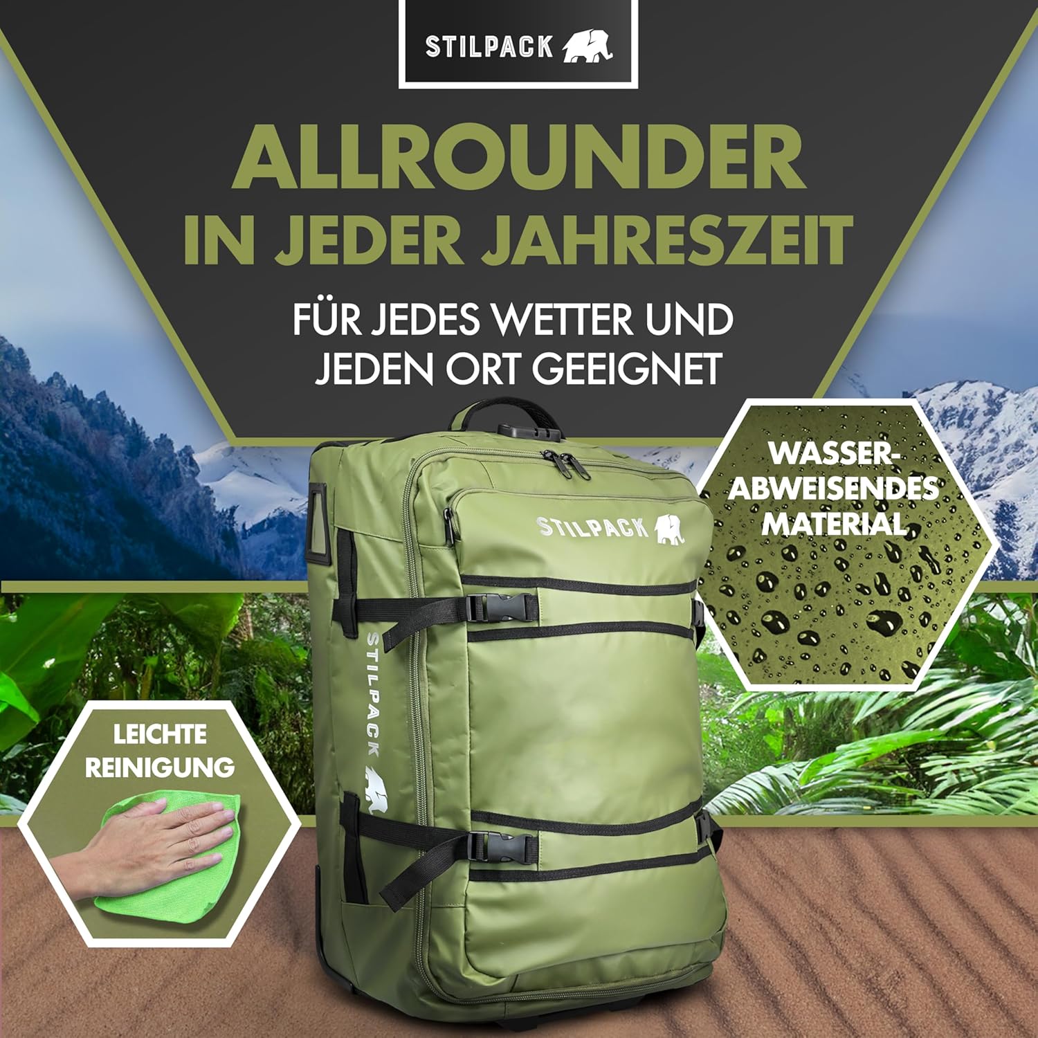 **Ultra durable: ** Our travel bag with wheels is made of durable PVC, which is not only durable, but also combines weather resistance and easy care. A rolling suitcase that can withstand any challenge