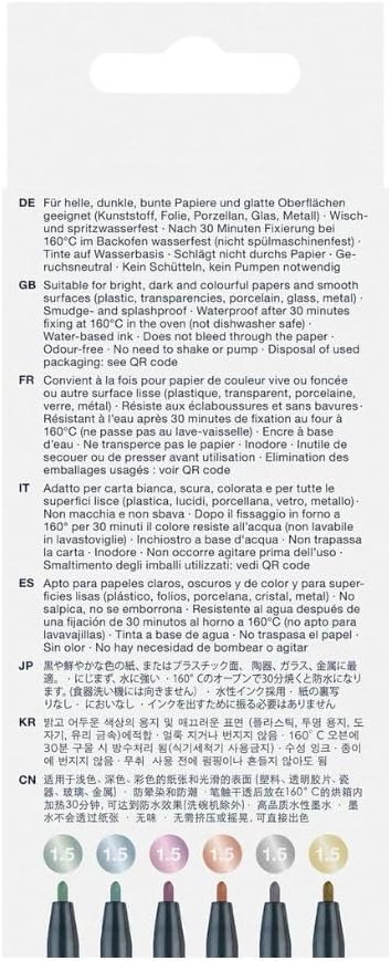 This allows you to customise light, dark and colourful papers Suitable for smooth surfaces such as plastic, film, porcelain, glass, metal Smudge-proof and splash-proof After fixing at 160°C in the oven waterproof ​ (Not dishwasher safe) Water-based ink Does not bleed through paper Odourless No pumping, no shaking necessary