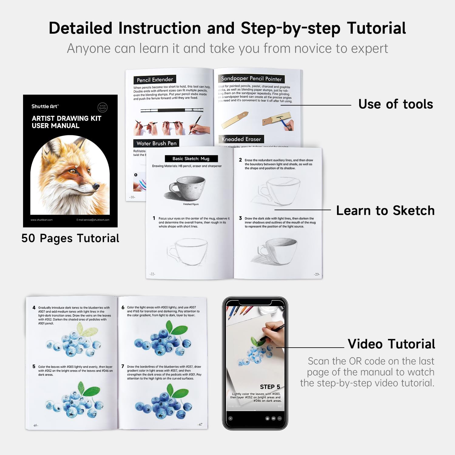 High-quality pens & safety: multifunctional drawing pen sketches smoothly and feels comfortable in the hand. The pencil is made of high-quality wood and lead, strong and durable, not easy to break. All painting tools and accessories in this set are made of environmentally friendly materials, are acid free and non-toxic. It is safe for children and adults.