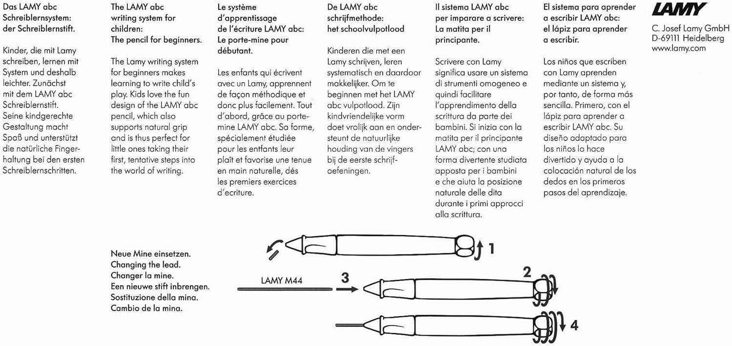Learning to write with Lamy – Children to perfect with Lamy writing, technique with system, making it portable. With the Lamy Abc learner’s Pen first. Then, when the ink used, with the Lamy Abc Beginner’s Fountain Pen. As both devices Suitable for children and of educational really is of all early light.