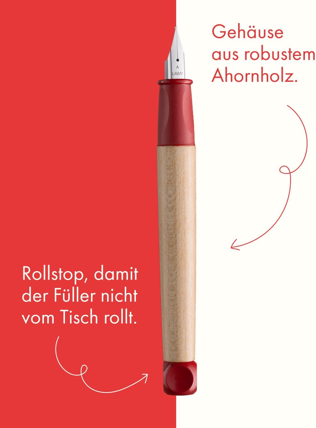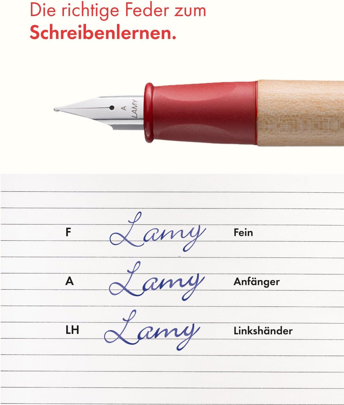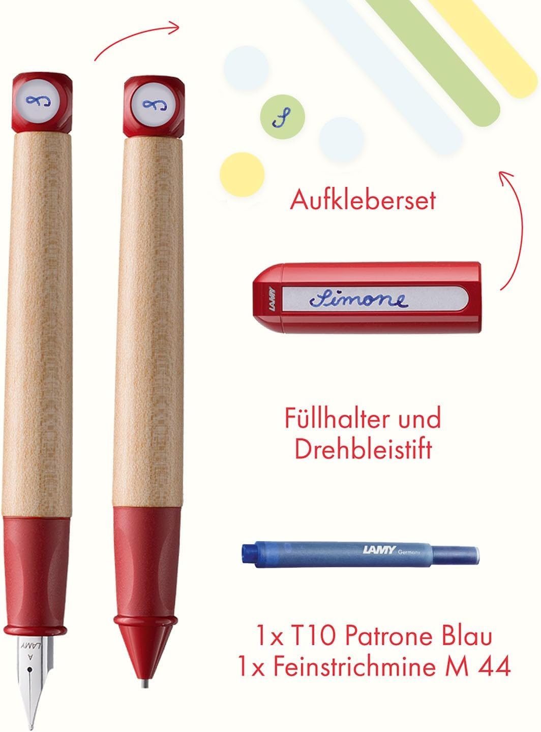 Box contents: 1 x Lamy abc fountain pen in red with beginner nib A including Lamy T 10 blue ink cartridge and 1 x mechanical pencil in red including break-resistant pencil lead – includes gift packaging