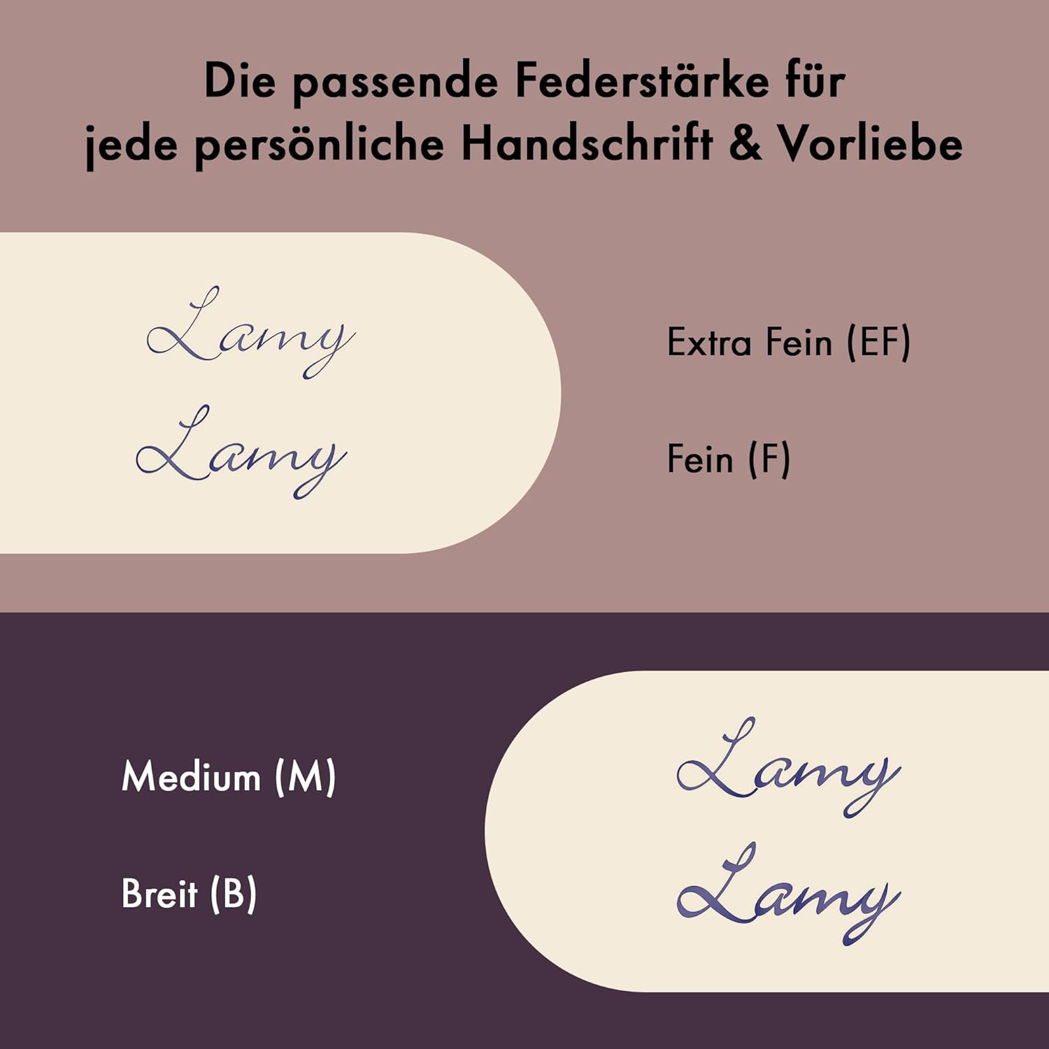 Matching accessories: you will also receive a blue erasable ink cartridge (Lamy T 10). The optional accessories, such as the Lamy Z 27 converter and ink glasses from Lamy in various colours as well as matching ballpoint pen and rollerball pen, expand creativity and uses.