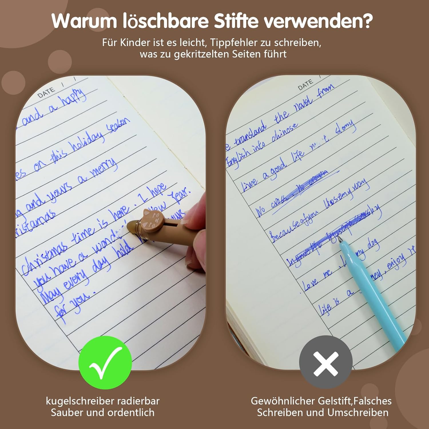 High-quality erasable ballpoint pen: If you always accidentally write typos, these erasable pens are the best choice. These erasable ballpoint pens without leaving marks and does not damage the paper, make your roll surface look as neat and clean as before