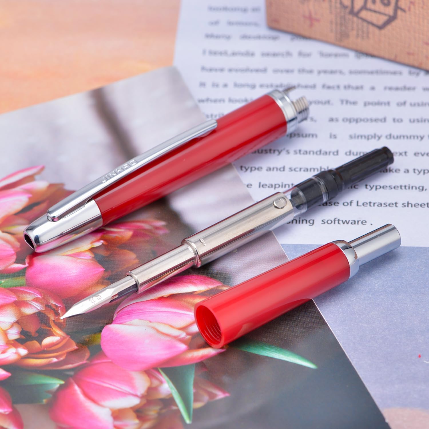 Be the first to review “Jinhao 20 Series Press Fountain Pen, Palace Red, Retractable Medium Nib with Ink Converter Set (Silver Clip)”