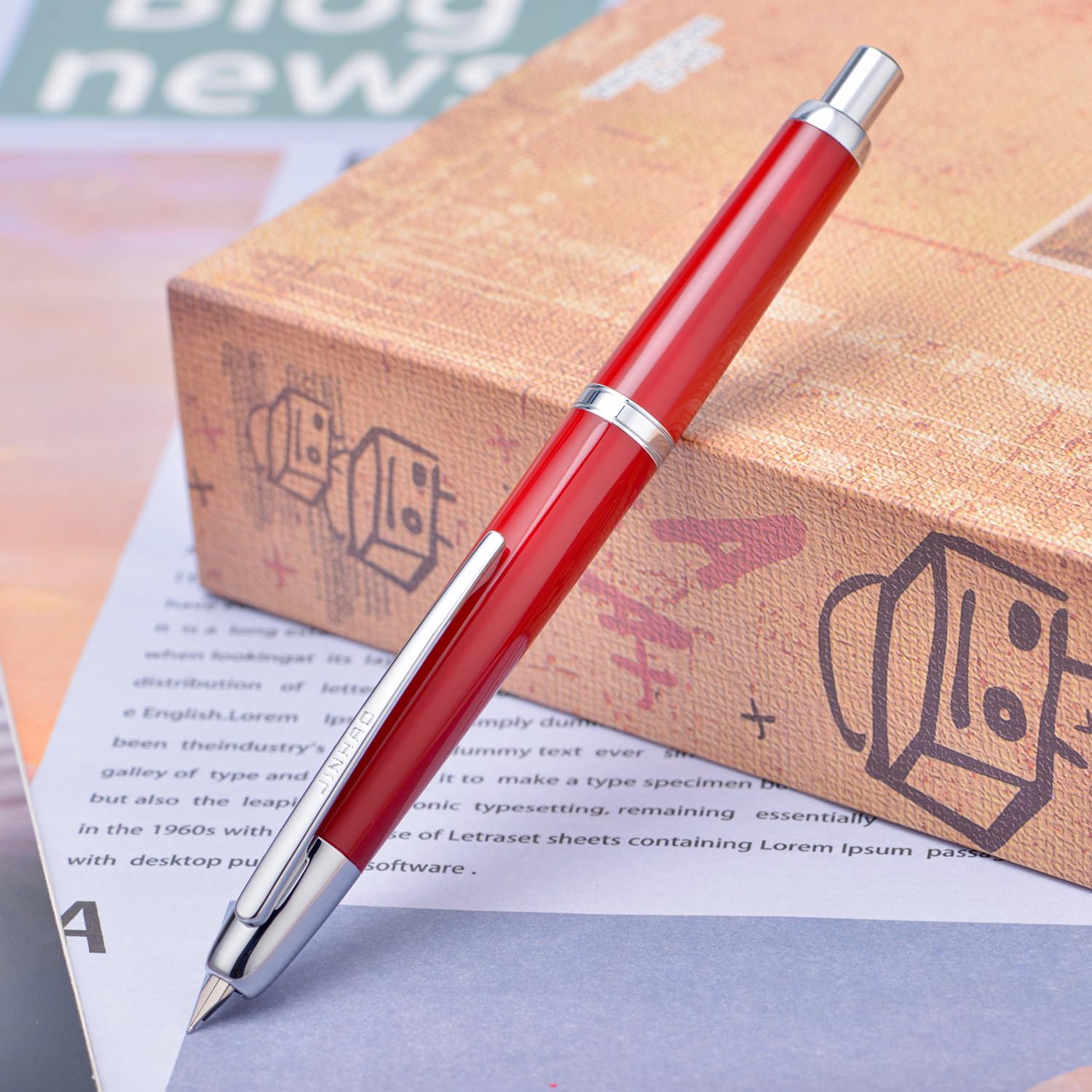 Slim design – The Jinhao 20 Series Press fountain pen exudes a deep, sophisticated charm, perfect for professionals looking for a refined and subtle look. The surface shows a minimalist yet impactful aesthetic.