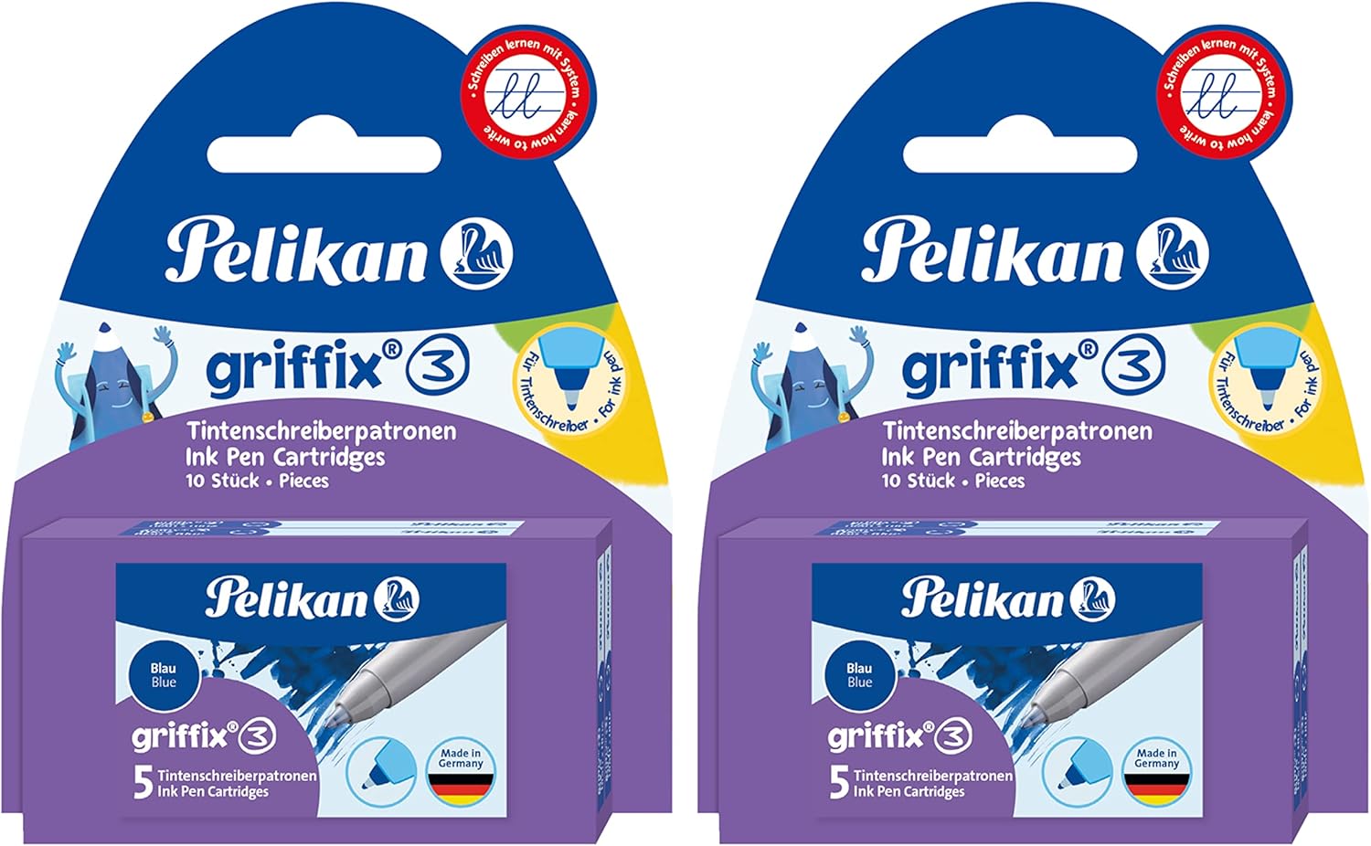 Griffix ink pen refill. The cartridges specially designed for the Pelikan Griffix ink pen. With blue, erasable ink with fibre tip (no ball) for smooth writing