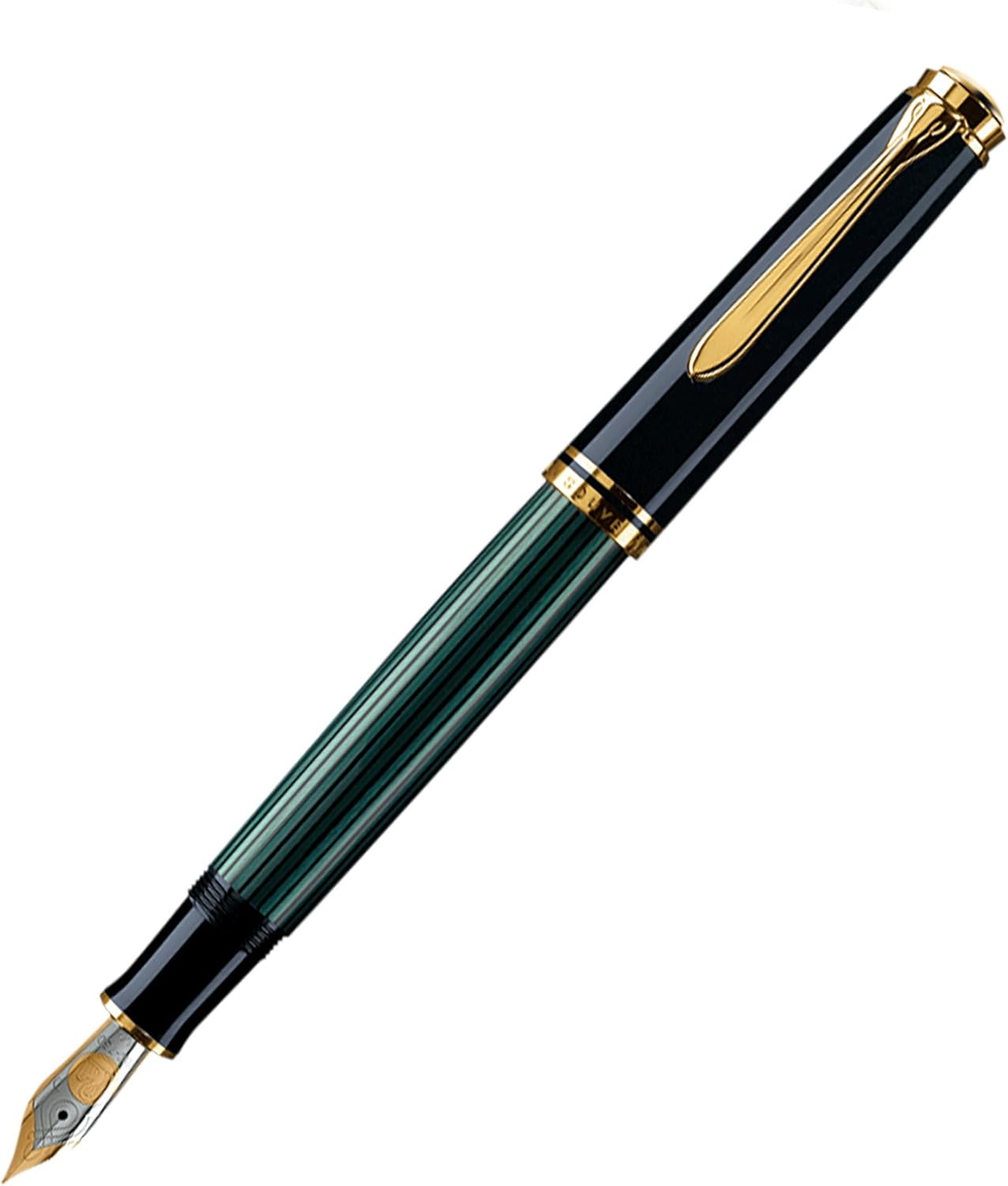 Die fein gestreifte Ikone ist klassisch, elegant, modern und vieles mehr: Souverän ist die führende Marke von Pelikan und ist unendlich erwünscht. Dieser Klassiker aus unserem Hause weckt immer neue Wünsche auf der Welt. Der Souverän 400 in schwarz und grün ist als Kolbenfüller, Kugelschreiber, Tintenroller und Druckbleistift erhältlich.