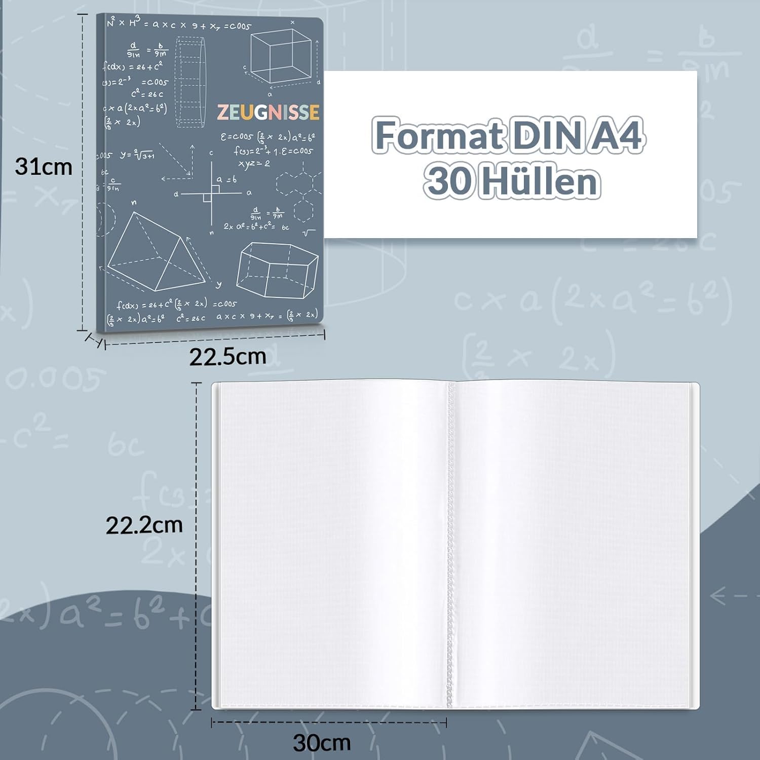 Optimal capacity with 30 transparent pockets – Equipped with 30 high-quality, transparent sleeves, the folder offers space for up to 60 documents. The specially designed sleeves guarantee stability and durability – perfect for long-term protection of your important documents.