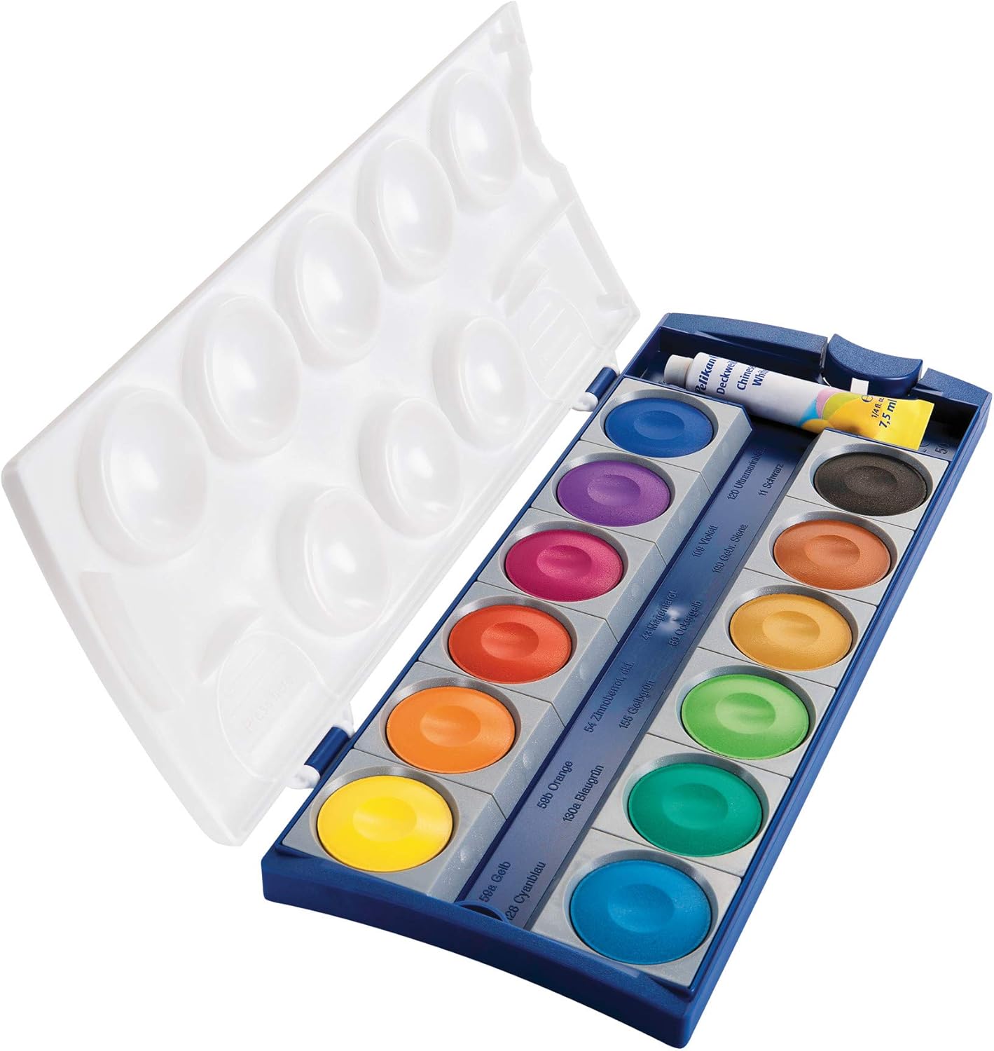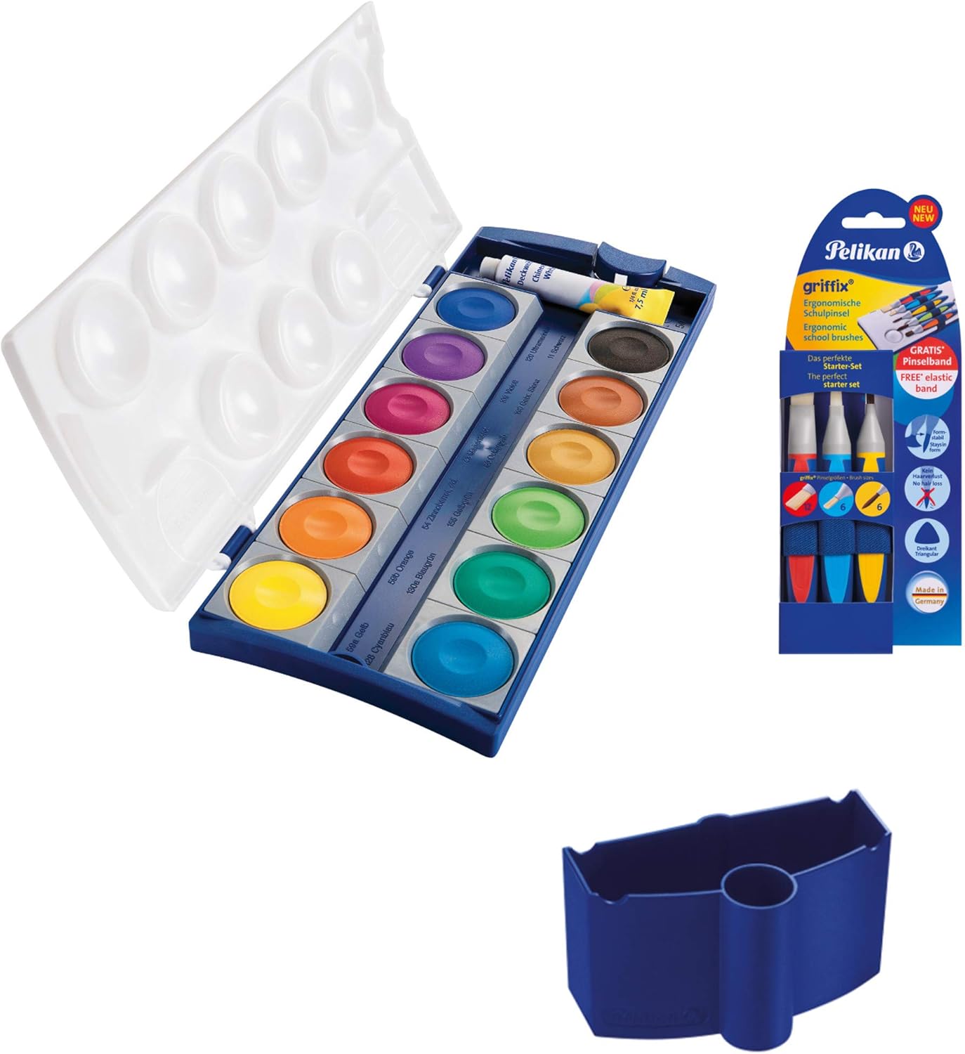 Compatible with Pelikan Deck Paint Box: „The water box is specially designed for the Pelikan deck paint box school standard and allows for convenient and tidy mixing and storage of the colours.